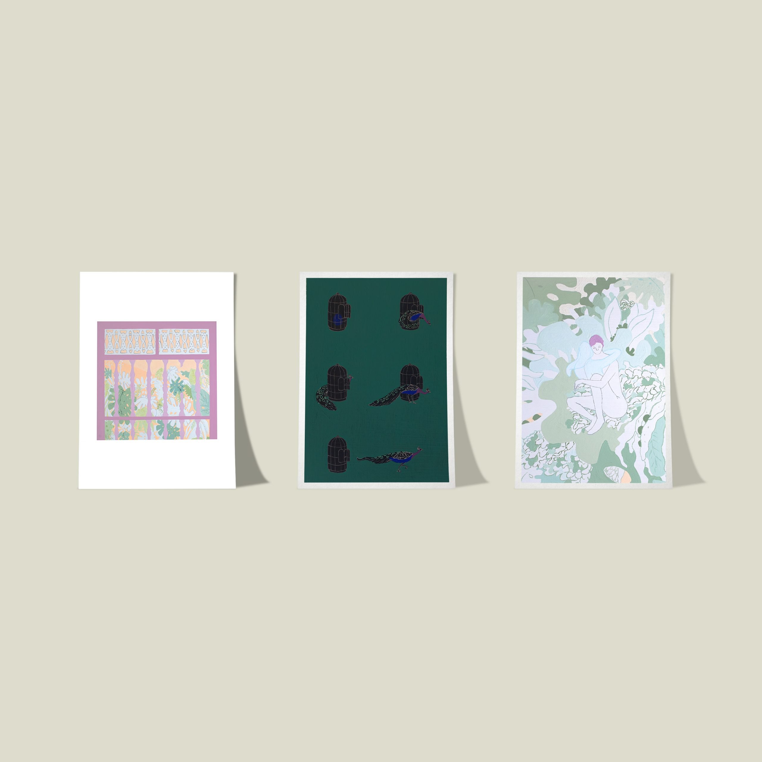 Postales para regalar o coleccionar. Este es un paquete de tres y corresponden al arte de Aclara, Fin y Vuelo. No te quedes sin las tuyas!